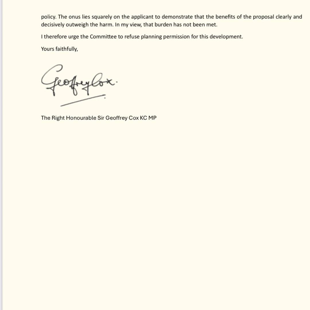 Objection to Bideford BESS fromThe Rt Hon Sir Geoffrey Cox KC MP